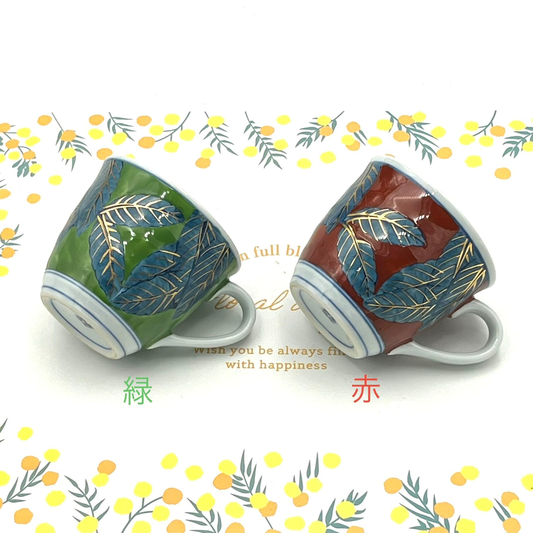 手描きによるもので、其々に絵付けの微妙な違いがあります。 金線まで丁寧に描かれています。 2色共に同じサイズです。 2個セットではありません。お好きなお色を種類からお選びください。 産地 有田焼(佐賀県有田町) 材質 磁器 サイズ 口径9.3cm×高さ8.1cm 内容量270ml(満水時) 電子レンジ、食洗器共にNG ◆ご購入の前にABOUT(ショップ情報)もご確認お願いします。