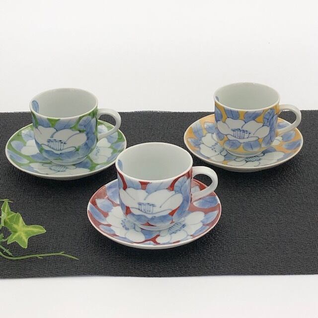 有田焼 錦はぎ絵(グリーン)突立コーヒー碗皿 カップ&ソーサー