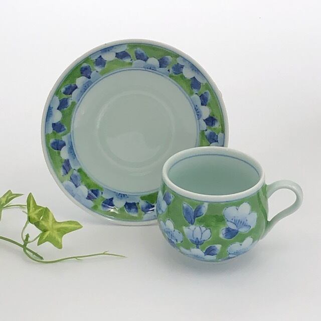 有田焼 山茶花(緑) 珈琲碗皿 カップ&ソーサー  | 有田焼ショップ まるとも陶磁器