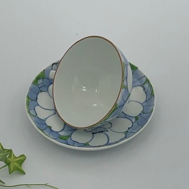 手描きの紅茶碗皿です。 産地 有田焼(佐賀県有田町) 材質 磁器 サイズ 碗径11.0cm×高さ5.2cm 皿径15.5㎝×高さ2.5㎝ 電子レンジ、食洗器共にOKですが、末永くお使い頂くためにも出来るだけお控え下さい。 ◆ご購入の前にABOUT(ショップ情報)もご確認お願いします。