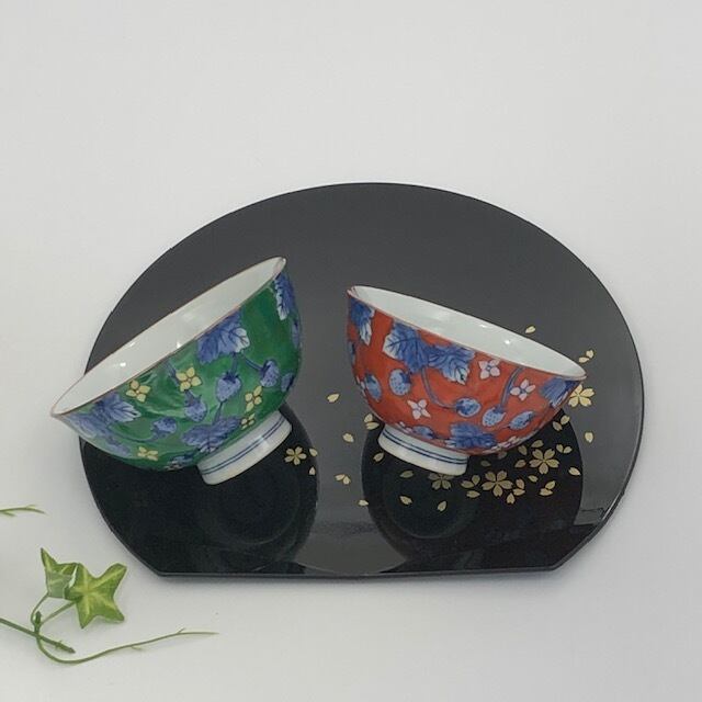 手描きのお茶碗です。 緑の方が赤より若干大き目で、一般的に男性用とされます。 2個セットではありません。お好きな絵柄を種類からお選びください。 産地 有田焼(佐賀県有田町) 材質 磁器 サイズ (緑)口径12.0cm×高さ6.5cm (赤)口径11.2cm×高さ6.0cm 電子レンジ、食洗器共にOKですが、末永くお使い頂くためにも出来るだけお控え下さい。 ◆ご購入の前にABOUT(ショップ情報)もご確認お願いします。